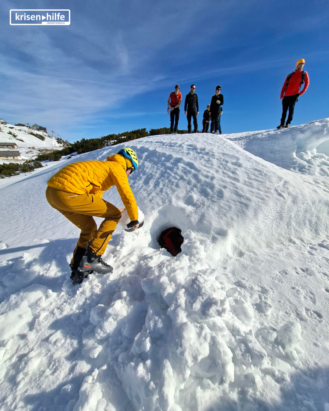 Gemeinsam mit den Ortsstellen Bad Ischl, Windischgarsten und Spital am Pyhrn gestalteten wir einen abwechslungsreichen Übungstag im winterlichen Gelände. Die Kolleg*innen der Krisenhilfe erhielten Einblicke in unsere Arbeitsweise im alpinen Einsatzraum – von Bergemöglichkeiten im Winter inklusive praktischer Erprobung des Akia, über eine gemeinsame Skitour bzw.Schneeschuhwanderung bis hin zur Einführung in die Lawinenkunde mit praktischer Arbeit mit Sonde und LVS. Auch die Arbeit der Lawinen- und Verschüttetensuchhunde wurde dabei vorgestellt.
